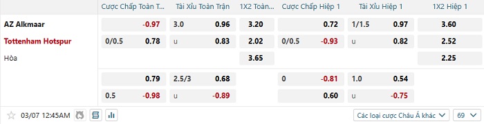 Tip kèo Châu Á hiệp 1 AZ Alkmaar vs Tottenham