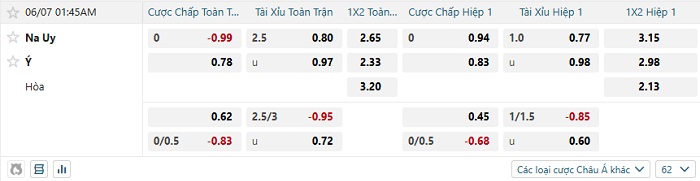 Tip kèo Châu Á full trận Na Uy vs Ý