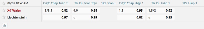 Tip kèo Châu Á hiệp 1 Wales vs Liechtenstein