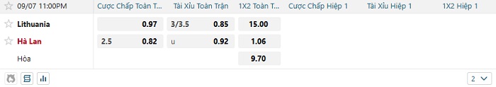Tip kèo Châu Á hiệp 1 Lithuania vs Hà Lan
