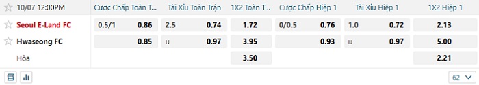 Tip kèo Châu Á full trận Seoul E-Land vs Hwaseong