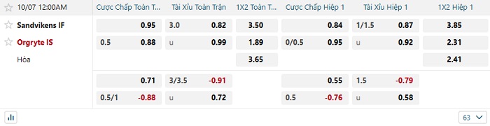 Tip kèo Châu Á hiệp 1 Sandvikens vs Orgryte