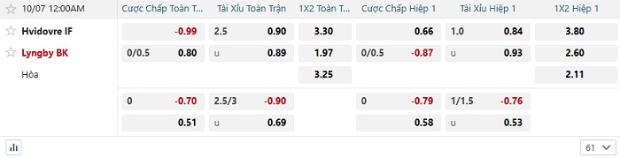 - Dự đoán tỷ số hiệp 1: Hvidovre 0 – 0 Lyngby