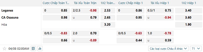 Tip kèo Châu Á full trận Leganes vs Osasuna