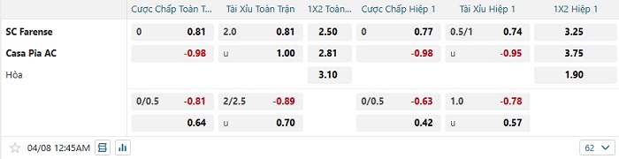 Tip kèo Châu Á full trận Farense vs Casa Pia