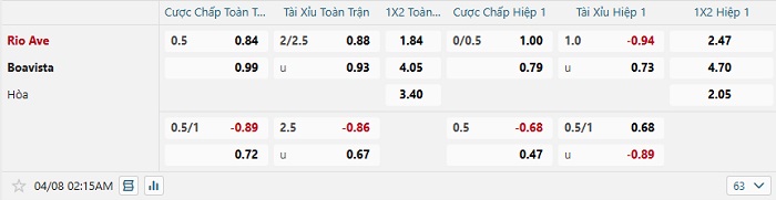 Tip kèo Châu Á full trận Rio Ave vs Boavista
