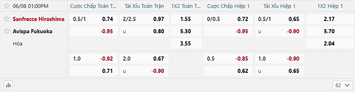 Tip kèo Châu Á hiệp 1 Sanfrecce Hiroshima vs Avispa Fukuoka