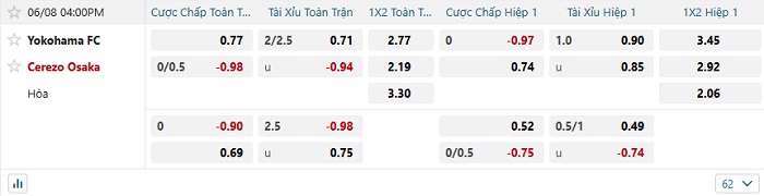 - Dự đoán tỷ số hiệp 1: Yokohama FC 0 – 0 Cerezo Osaka