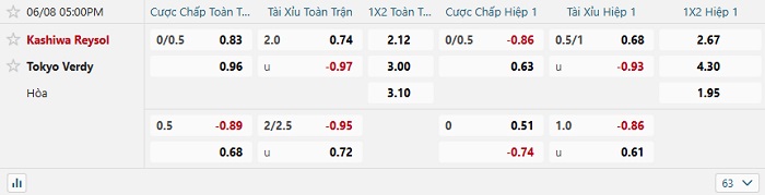 Tip kèo Châu Á full trận Kashiwa Reysol vs Tokyo Verdy