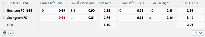 Tip kèo Châu Á full trận Bucheon FC vs Seongnam FC