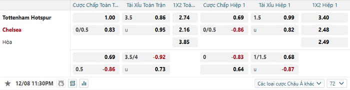 Tip kèo Châu Á hiệp 1 Tottenham vs Chelsea