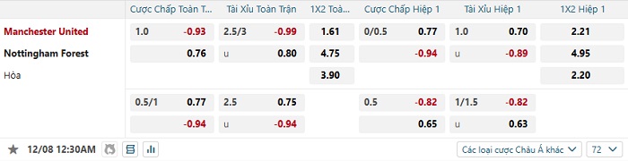 Tip kèo Châu Á hiệp 1 Man United vs Nottingham