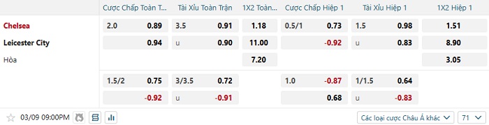 Tip kèo Châu Á hiệp 1 Chelsea vs Leicester