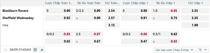 Tip kèo Châu Á full trận Blackburn vs Sheffield Wed