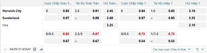 Tip kèo Châu Á full trận Norwich vs Sunderland
