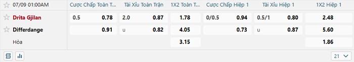 Tip kèo Châu Á hiệp 1 Drita Gjilan vs Differdange
