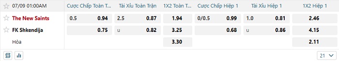 Tip kèo Châu Á hiệp 1 The New Saints vs FK Shkendija