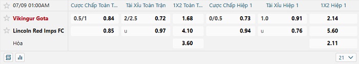 • Dự đoán tỷ số hiệp 1: Vikingur Gota 1 – 0 Lincoln Red Imps
