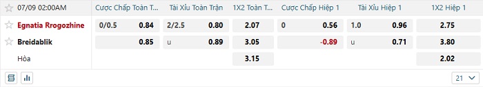 Tip kèo Châu Á hiệp 1 Egnatia Gjilan vs Breidablik