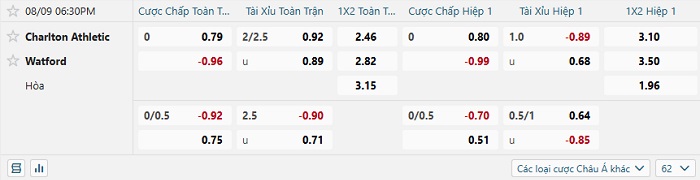 Tip kèo Châu Á full trận Charlton vs Watford