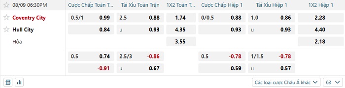 Tip kèo Châu Á full trận Coventry vs Hull City