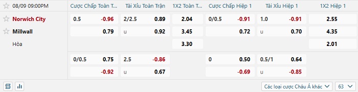 Tip kèo Châu Á full trận Norwich vs Millwall