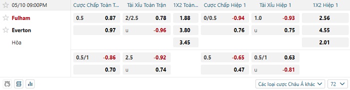 Tip kèo Châu Á full trận Fulham vs Everton
