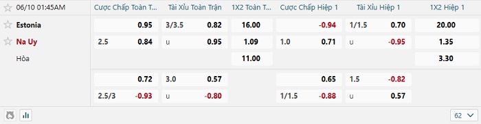 Tip kèo Châu Á hiệp 1 Estonia vs Na Uy