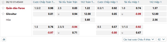 Tip kèo Châu Á full trận Quần đảo Faroe vs Gibraltar