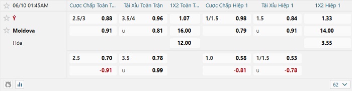 - Dự đoán tỷ số hiệp 1: Ý 1 – 0 Moldova
