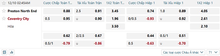 Tip kèo Châu Á hiệp 1 Preston vs Coventry