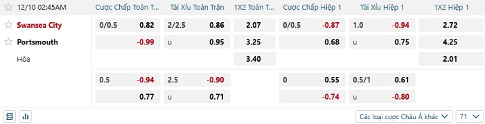 Tip kèo Châu Á full trận Swansea vs Portsmouth