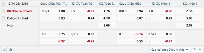 Tip kèo Châu Á hiệp 1 Blackburn vs Oxford