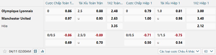 Tip kèo Châu Á hiệp 1 Lyon vs Man United