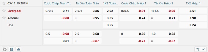Tip kèo Châu Á hiệp 1 Liverpool vs Arsenal
