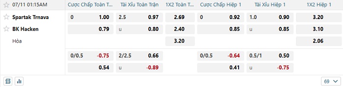 Tip kèo Châu Á hiệp 1 Spartak Trnava vs BK Hacken