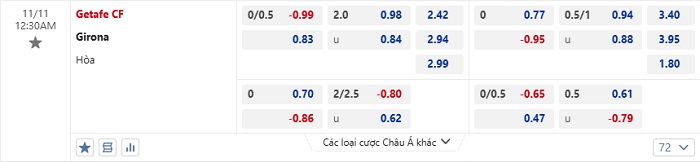Tip kèo Châu Á full trận Getafe vs Girona