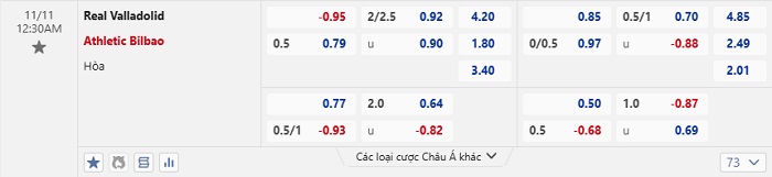 Tip kèo Châu Á full trận Real Valladolid vs Bilbao
