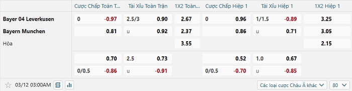 Tip kèo Châu Á full trận Bayer Leverkusen vs Bayern Munich