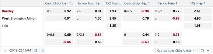 Tip kèo Châu Á full trận Burnley vs West Brom