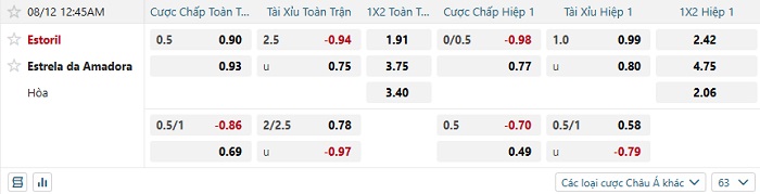 Tip kèo Châu Á full trận Estoril vs Estrela