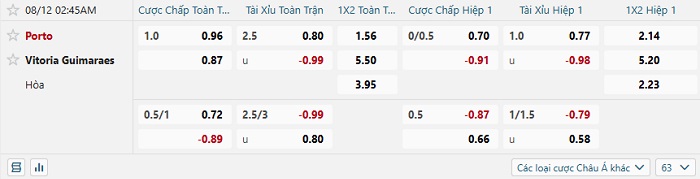 Tip kèo Châu Á full trận Porto vs Vitoria Guimaraes