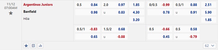 Tip kèo Châu Á full trận Argentinos Juniors vs Banfield