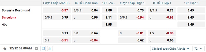 Tip kèo Châu Á full trận Dortmund vs Barcelona