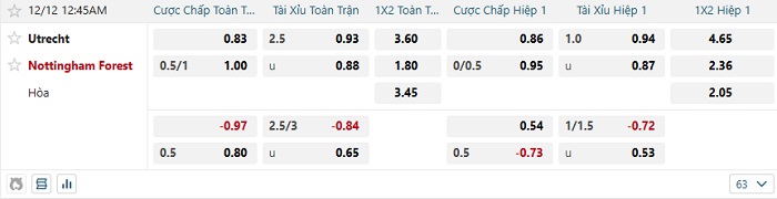 Tip kèo Châu Á hiệp 1 Utrecht vs Nottingham