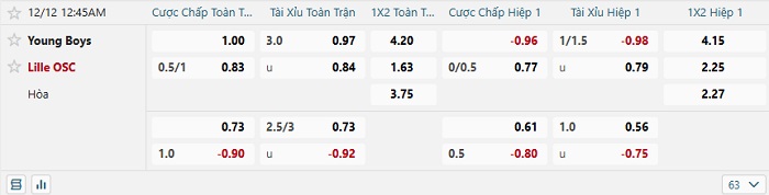 Tip kèo Châu Á full trận Young Boys vs Lille