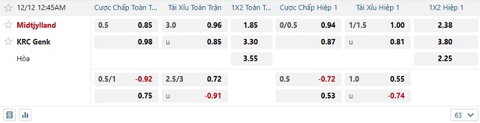 Tip kèo Châu Á full trận Midtjylland vs Genk
