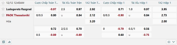 Tip kèo Châu Á full trận Ludogorets vs Thessaloniki