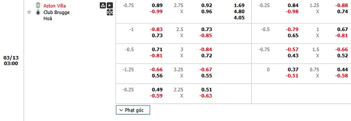 Tip kèo Châu Á full trận Aston Villa vs Club Brugge