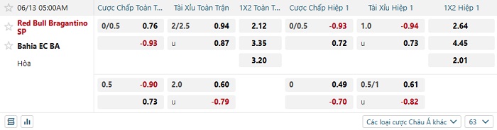 Tip kèo Châu Á hiệp 1 Red Bull Bragantino vs Bahia